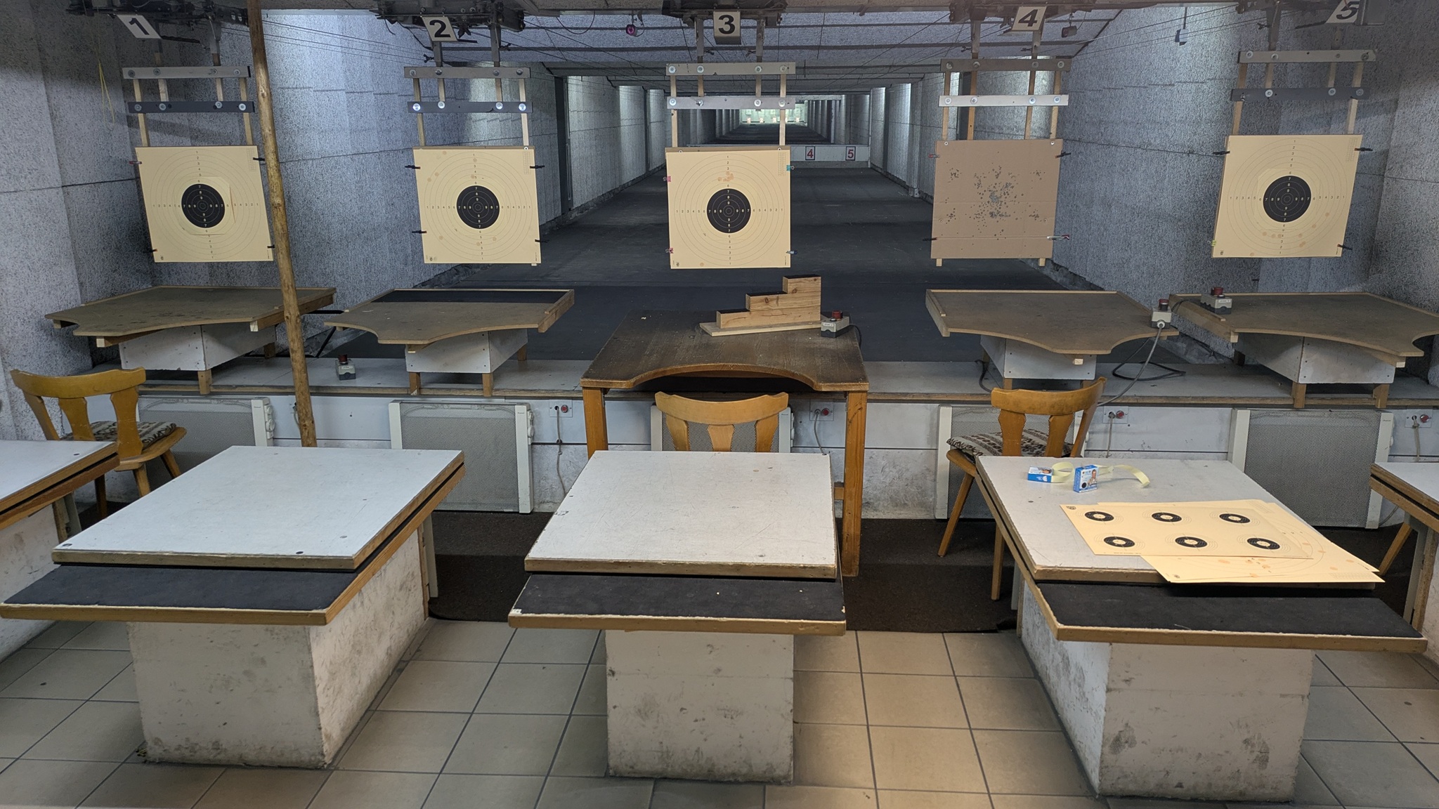 Es gibt dort einen 100m-Indoor-Stand mit 5 Bahnen mit Zugseilanlage für Papierscheiben. Wir sind dort wetterunabhängig. Die zulässige Geschossenergie beträgt maximal 7000J. Die Teilnahme ist nur mit bereits zumindest auf 50m eingeschossenen Waffen zulässig.