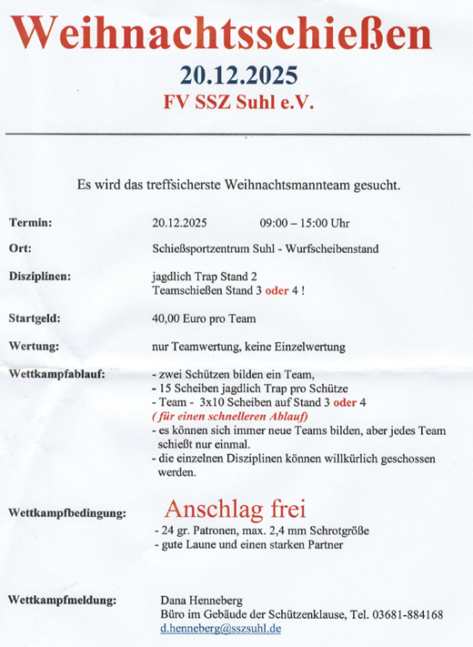 Weihnachtsschießen Wurfscheibe Trap in Suhl